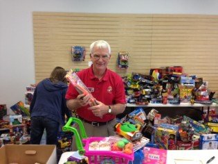 This is Billy Cunningham, a member of the Cpl. Joseph Whitehead Marine Corps League Detachment #1370 in Gulf Shores, helping to organize the toys collected for the Marine Corps Toys for Tots program. He says his contribution was small compared to the hard work of other detachment members, especially Steve and Freda Fleming. The detachment collected 6116 toys, 333 books and 938 stocking stuffers.